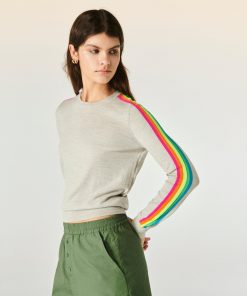From Future Women’s Tops Crewneck Sweater With Multicolored Stripe On The Sleeves | Gris Chine Clai
