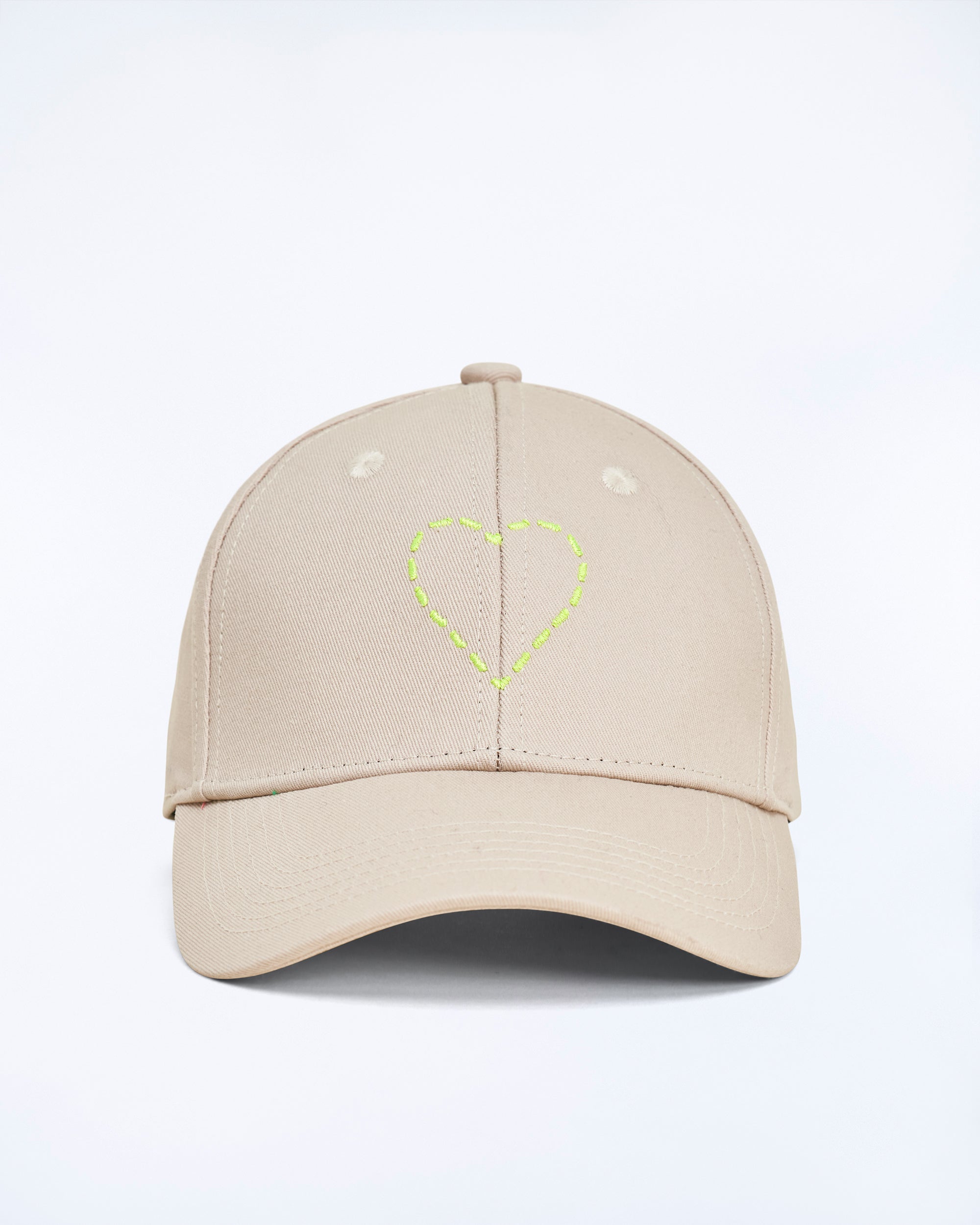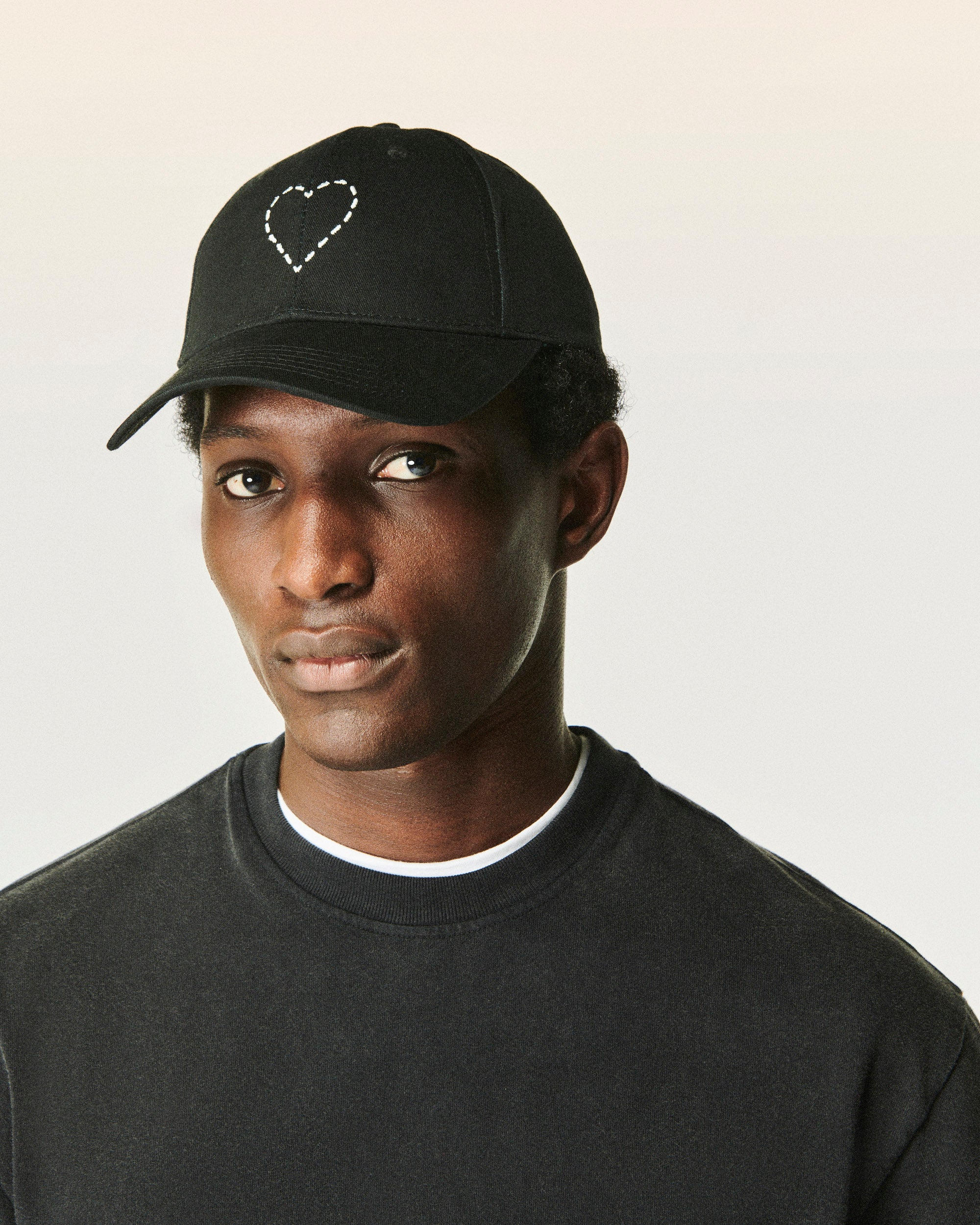 Take your style to the next level with this cotton cap! Featuring an adjustable strap, it reveals a bold, contrasting embroidered heart on the front, adding a touch of futuristic romance to your everyday look.