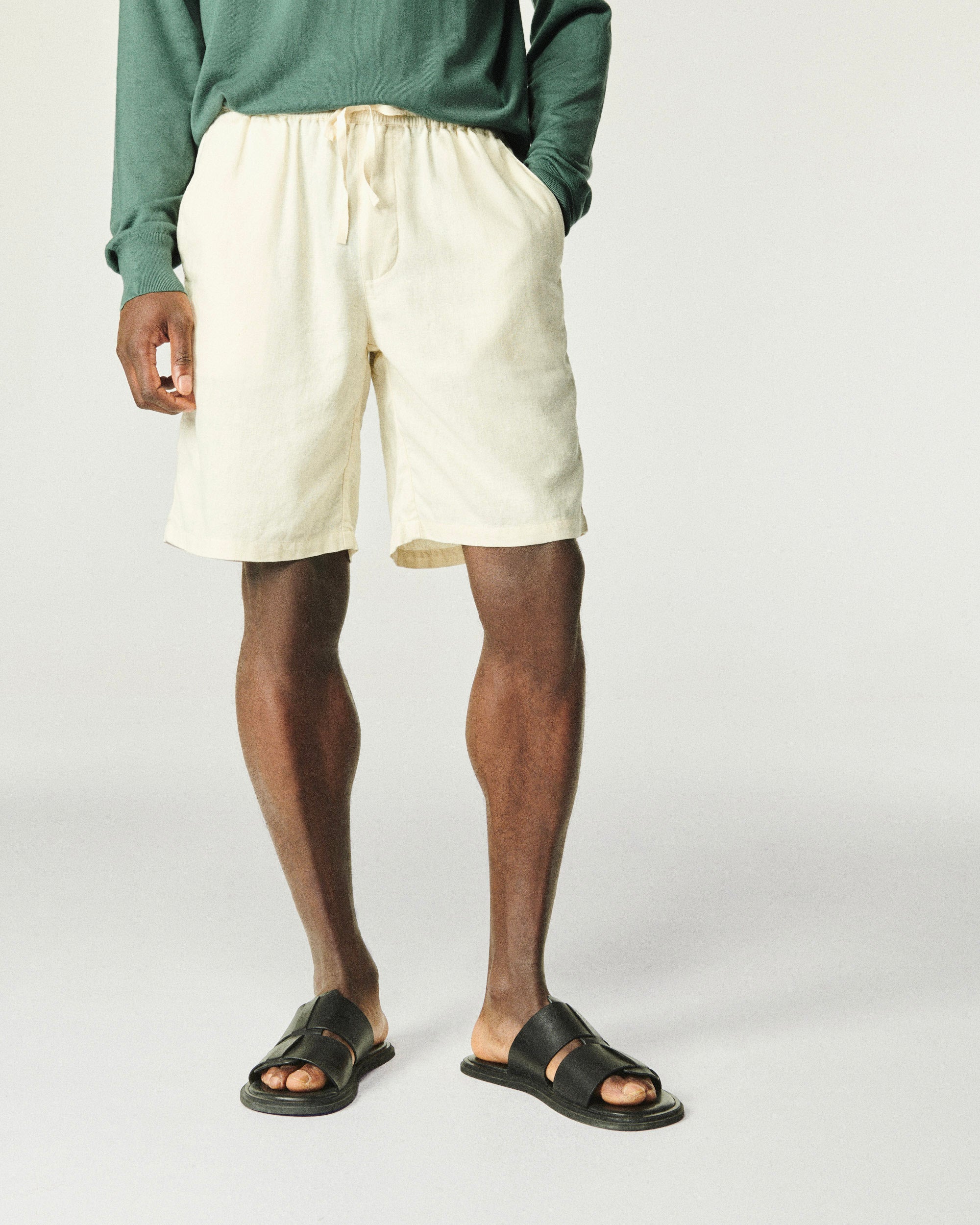 A must-have staple for any man’s wardrobe. With an elasticated drawstring waist, these cotton Bermuda shorts feature two front pockets and two mock welt pockets at the back. Versatile for any occasion, pair them with a structured shirt or an oversized t-shirt.
