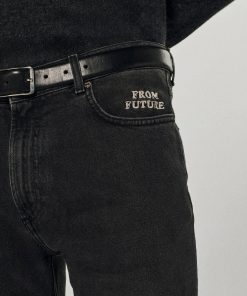 All about Jacob: slim fit jeans. FROM FUTURE semi-hidden embroidery on the left pocket. Colourful logo patch on the back. Front logo button closure.