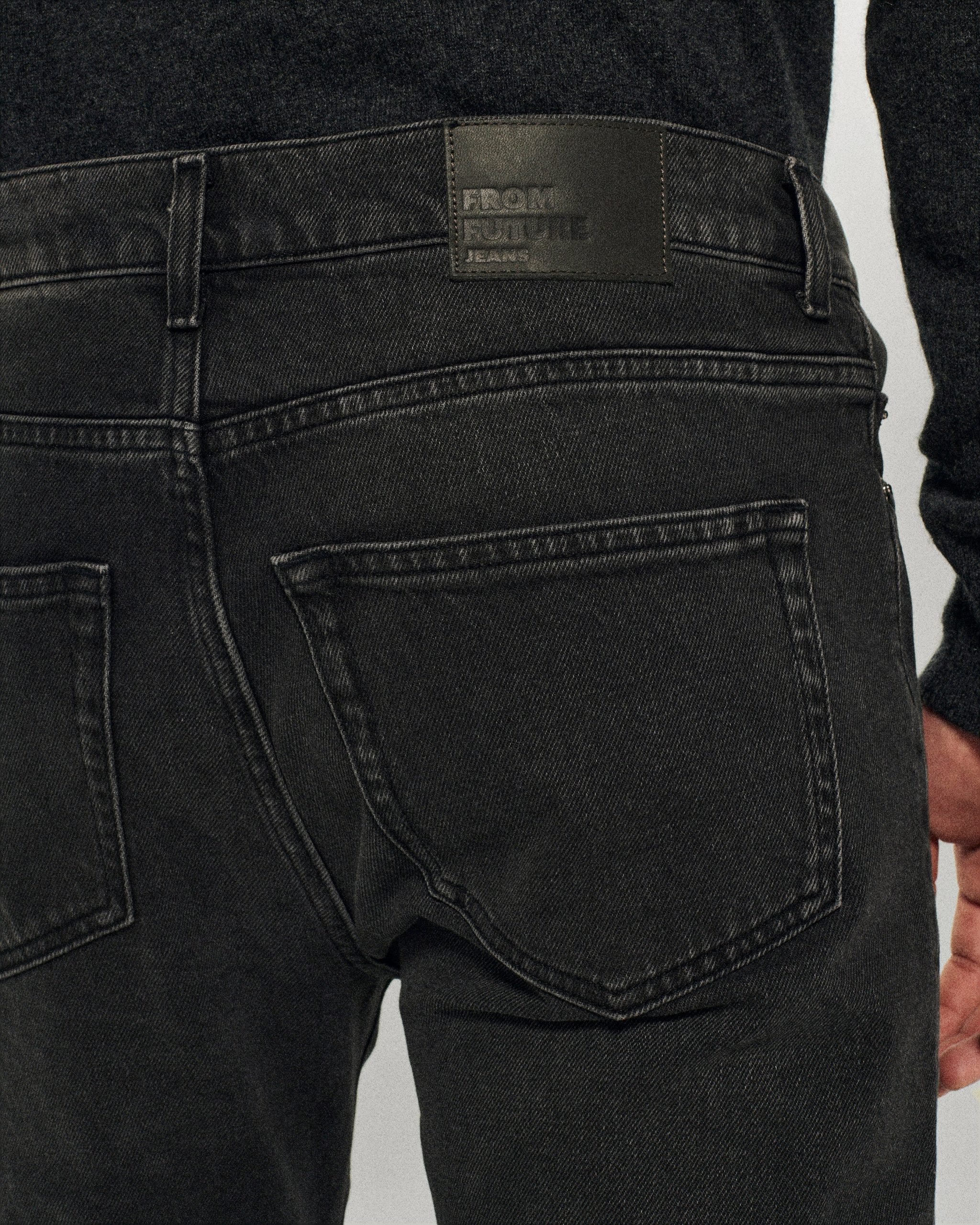FROM FUTURE jeans are made from recycled cotton from industrial fabric scraps (74% cotton, 25% recycled cotton, 1% elastane). The colors have been worked with care thanks to the eco wash system: an ecological washing process that drastically reduces the consumption of water, energy and chemical products.