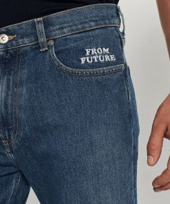 All about Jacob: slim fit jeans. FROM FUTURE semi-hidden embroidery on the left pocket. Colourful logo patch on the back. Front logo button closure.