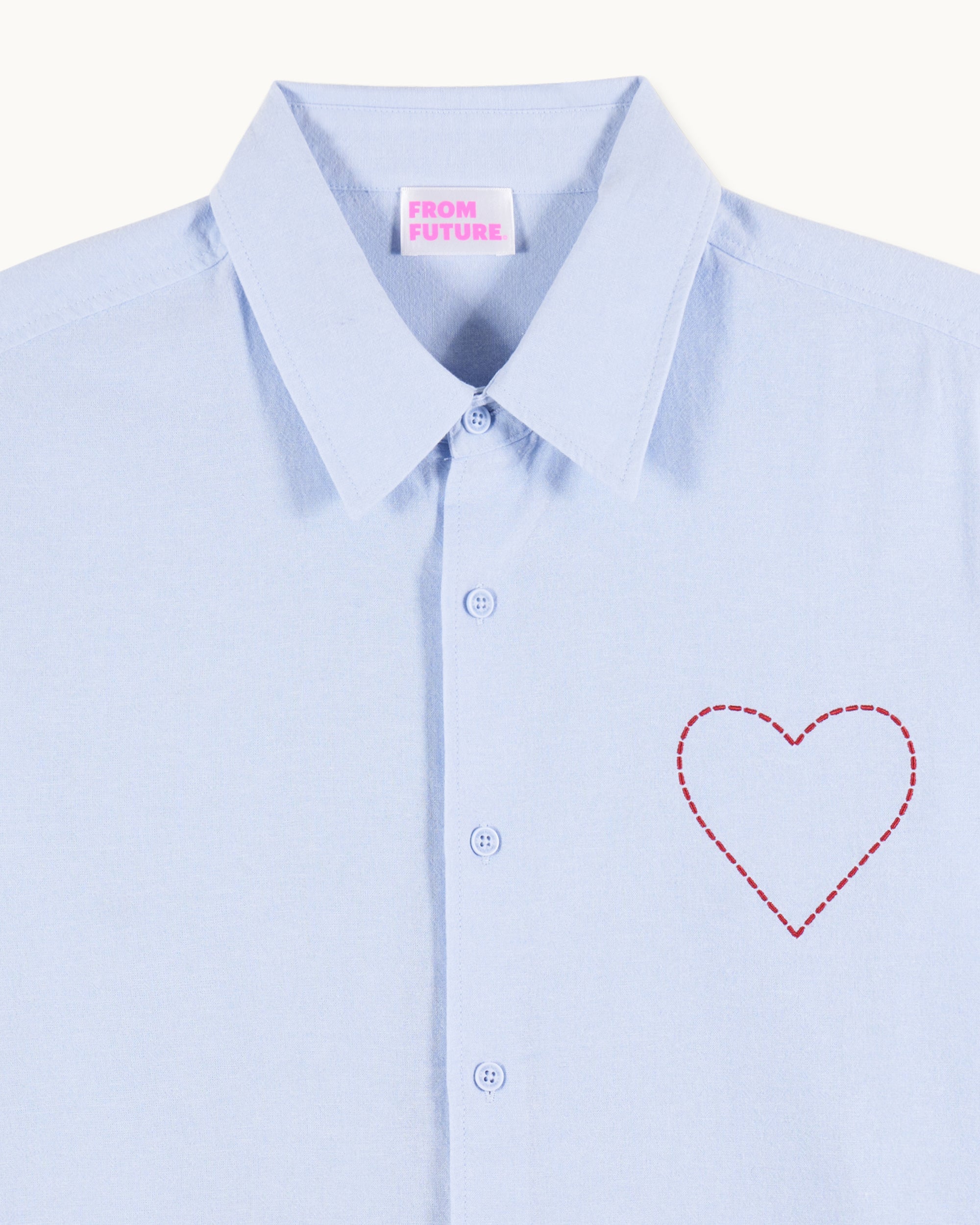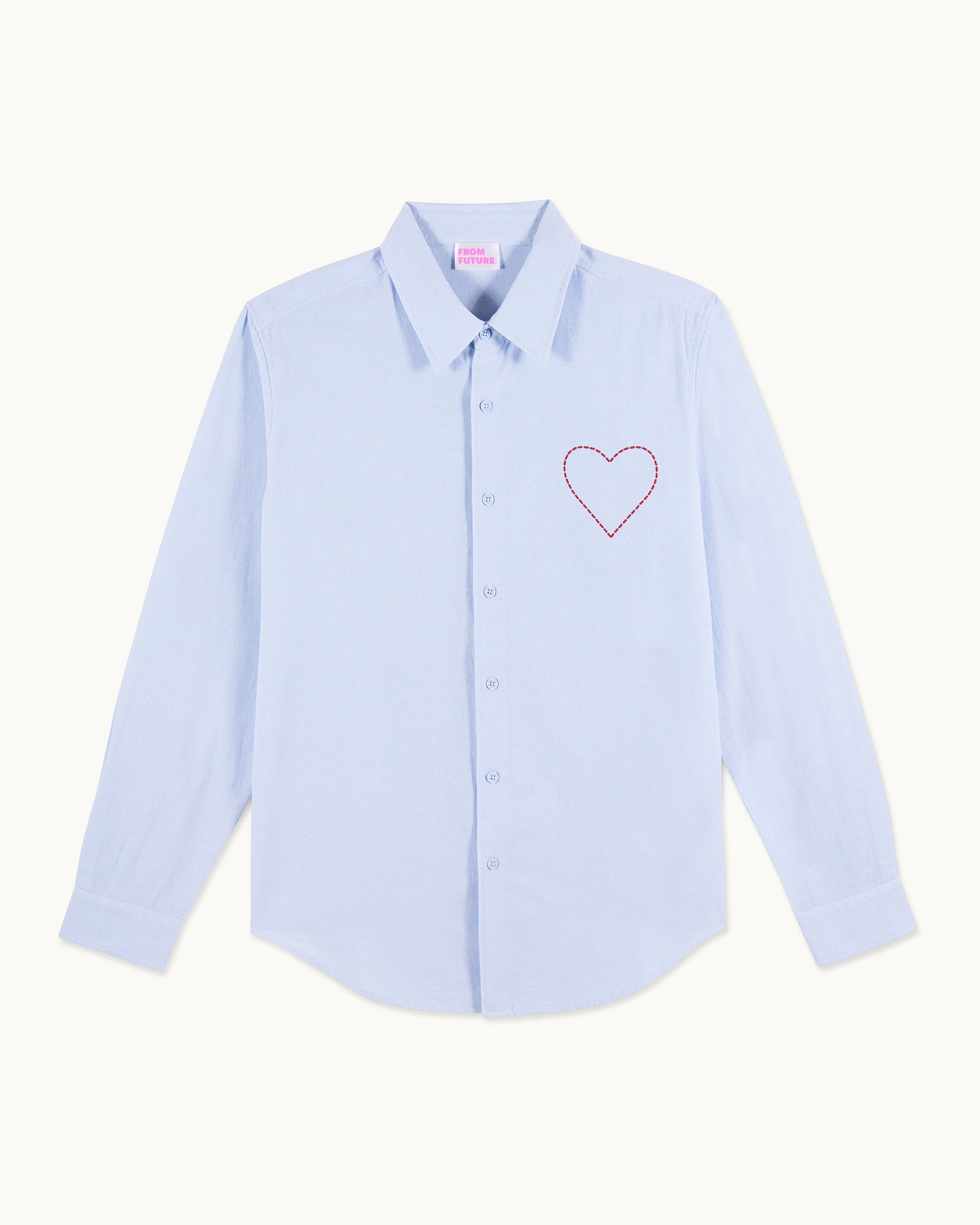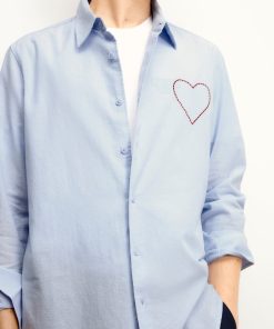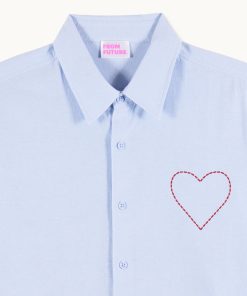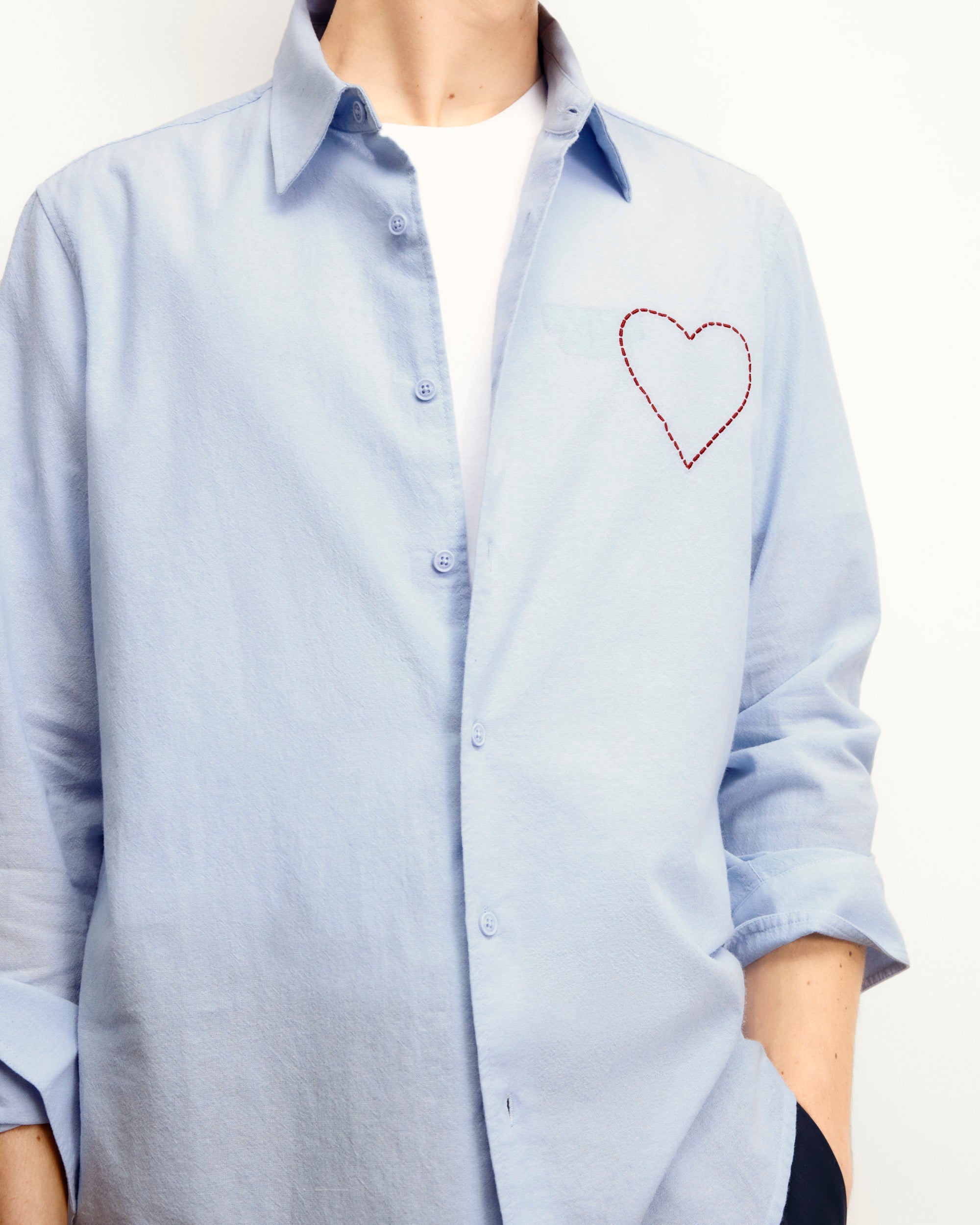 Elevate your look with this structured shirt, adorned with an embroidered and topstitched heart on the chest. Its classic shirt neck, long sleeves, buttoned closure and cuffs create a sophisticated silhouette.