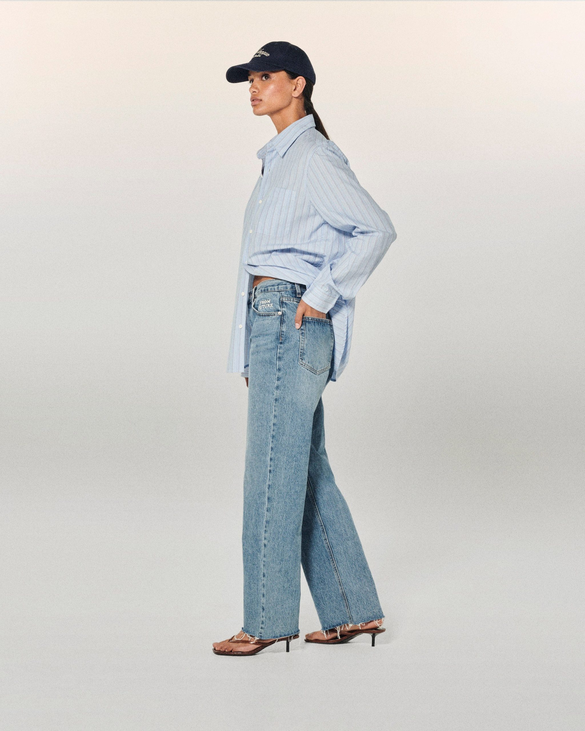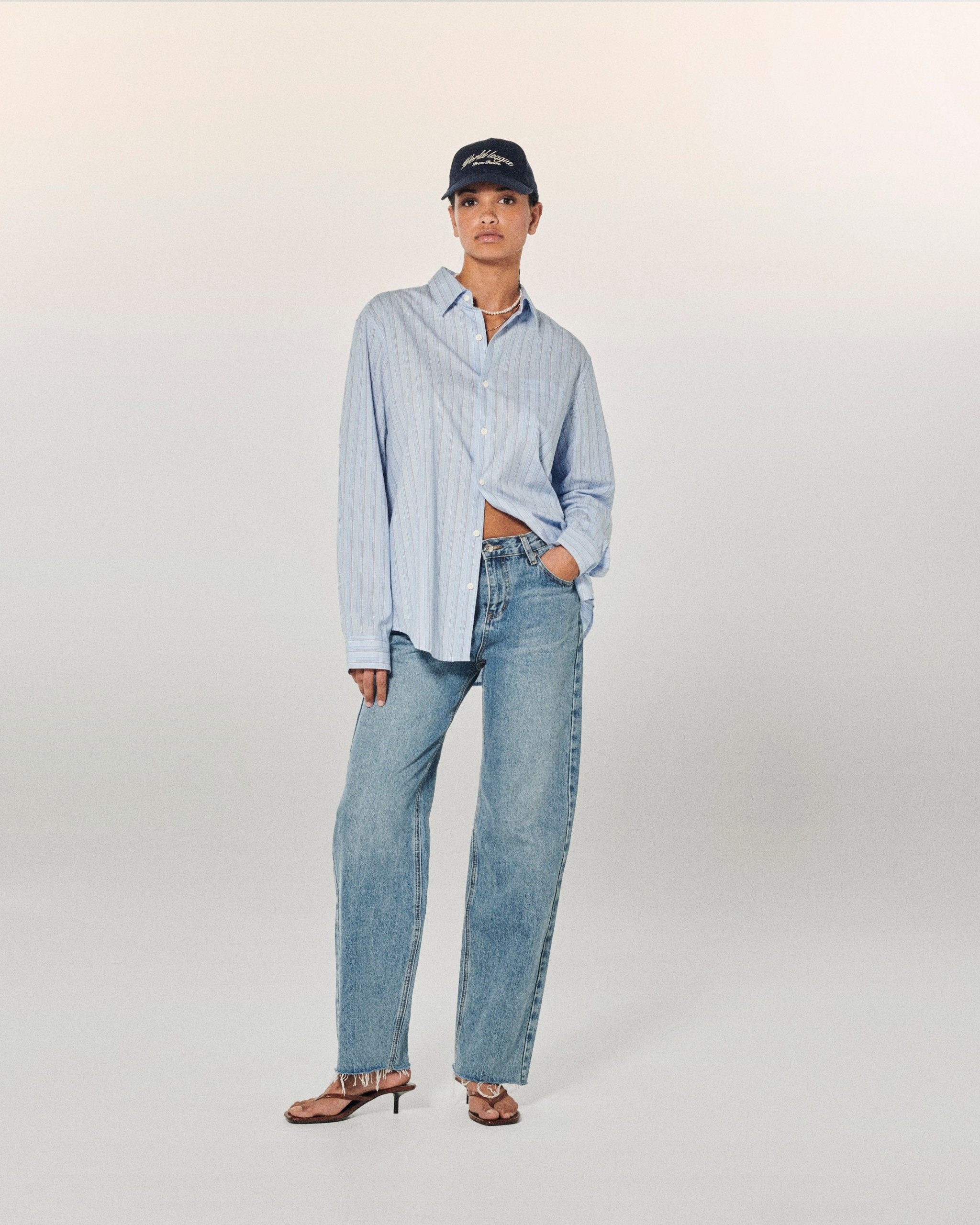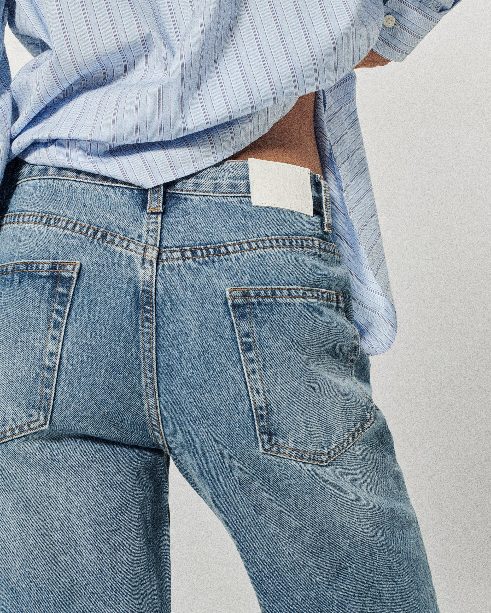 These baggy jeans have two pockets at the front and back and a zip and button closure. Its wide cut and futuristic details make it a must-have piece for a bold and structured silhouette. Easy to mix and match, it pairs with a flowing shirt or casual sweatshirt.