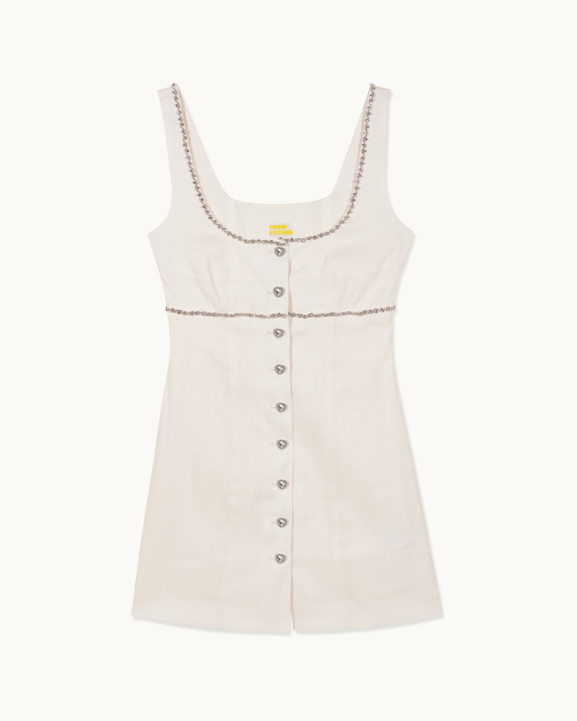 – Rounded neckline with rhinestones